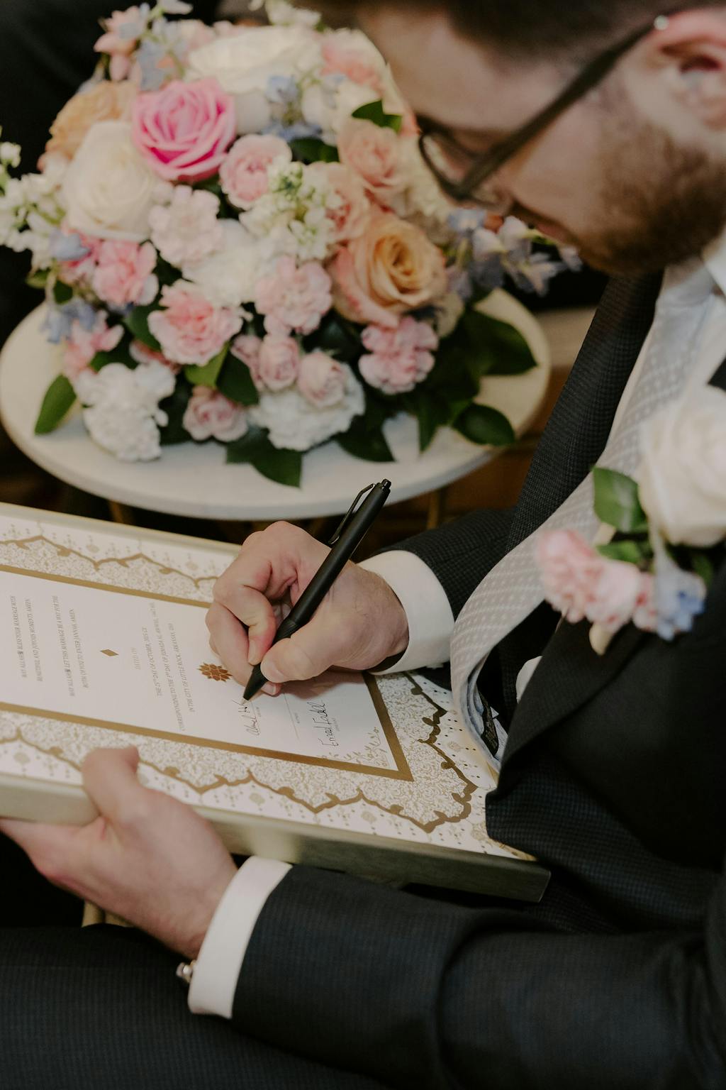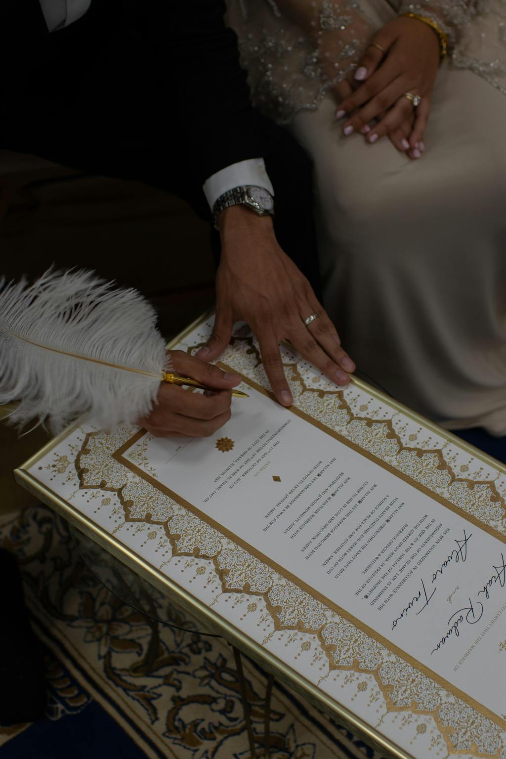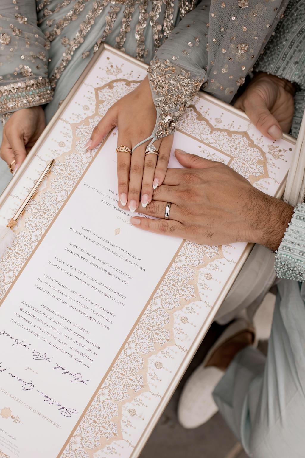 Bring your nikah certificate to the religious ceremony, along with any required government documents, and present it to your officiant. The signing happens during the nikah or katb al-kitab, where all documents are signed at once. While some cultures treat the nikah ceremony like an engagement event, once the nikah is complete, the marriage becomes valid in Islam.