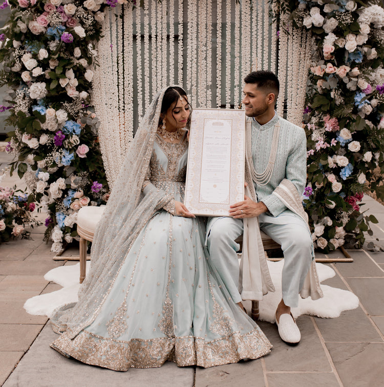 Your Raeesa Studio Nikah Certificate is an heirloom created to be signed during your religious ceremony. Couples love how it elevates their wedding photos and becomes an integral part of the nikah decor, providing a deeply personal and artistic element that enhances the meaning of the ceremony.