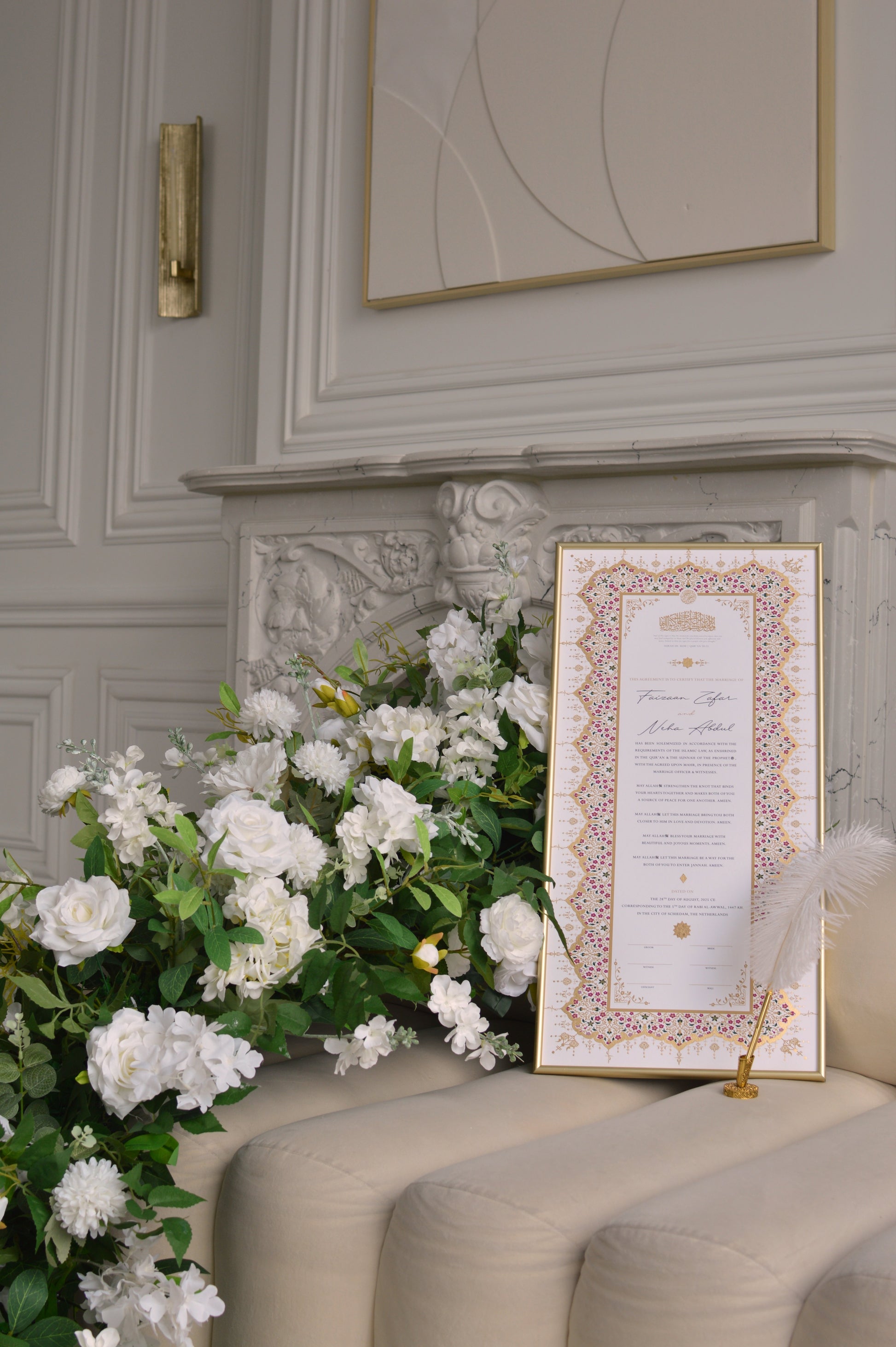 Yes. Raeesa Studio nikah certificates hold Islamic validity as Muslim marriage contracts provided that the Mahr is stated on the certificate. You have the flexibility to personalize the Mahr directly on our website once you have selected your preferred design.