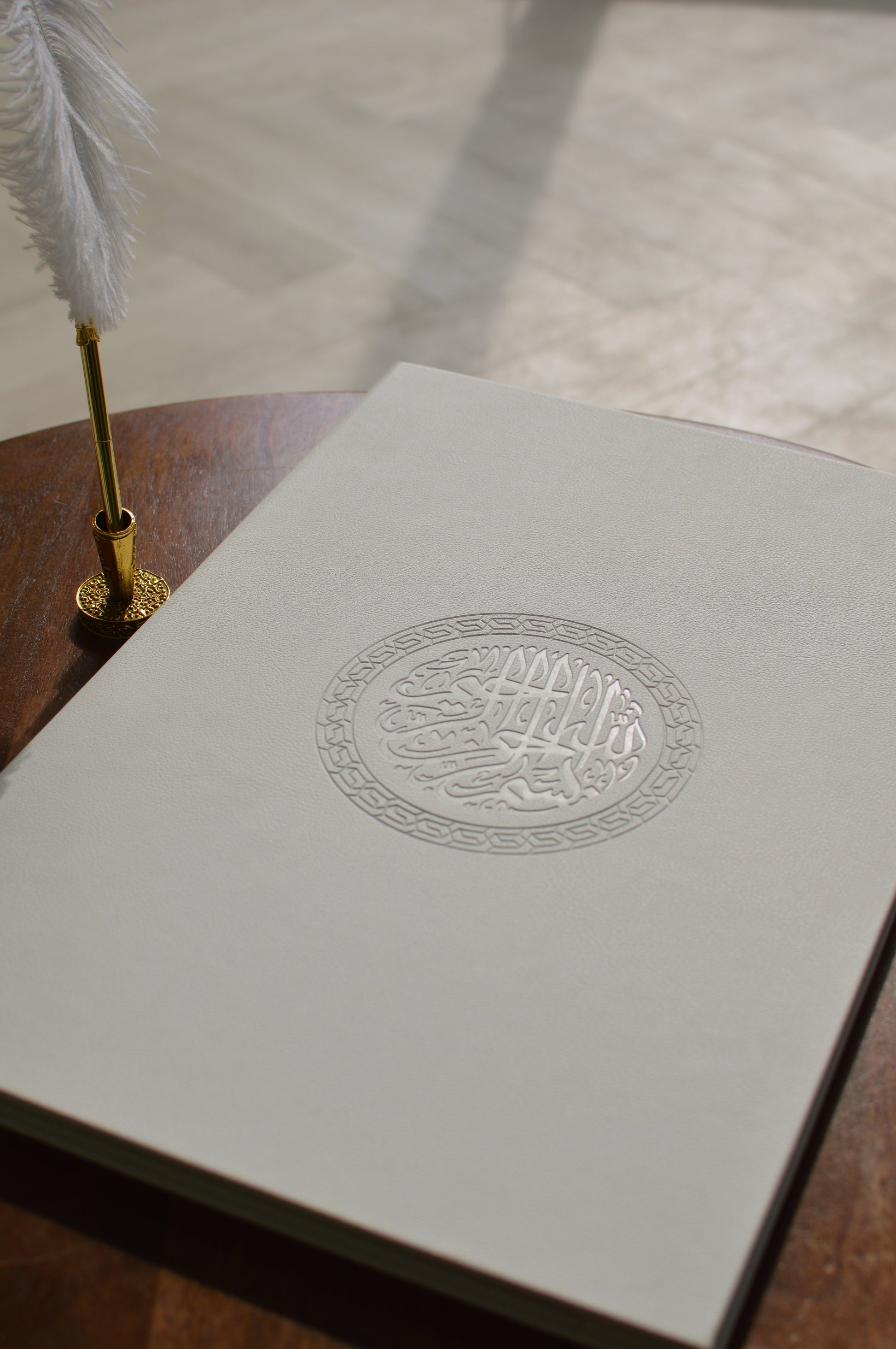 ✦ White Leather Folder with Debossed Foil Chain Basmallah