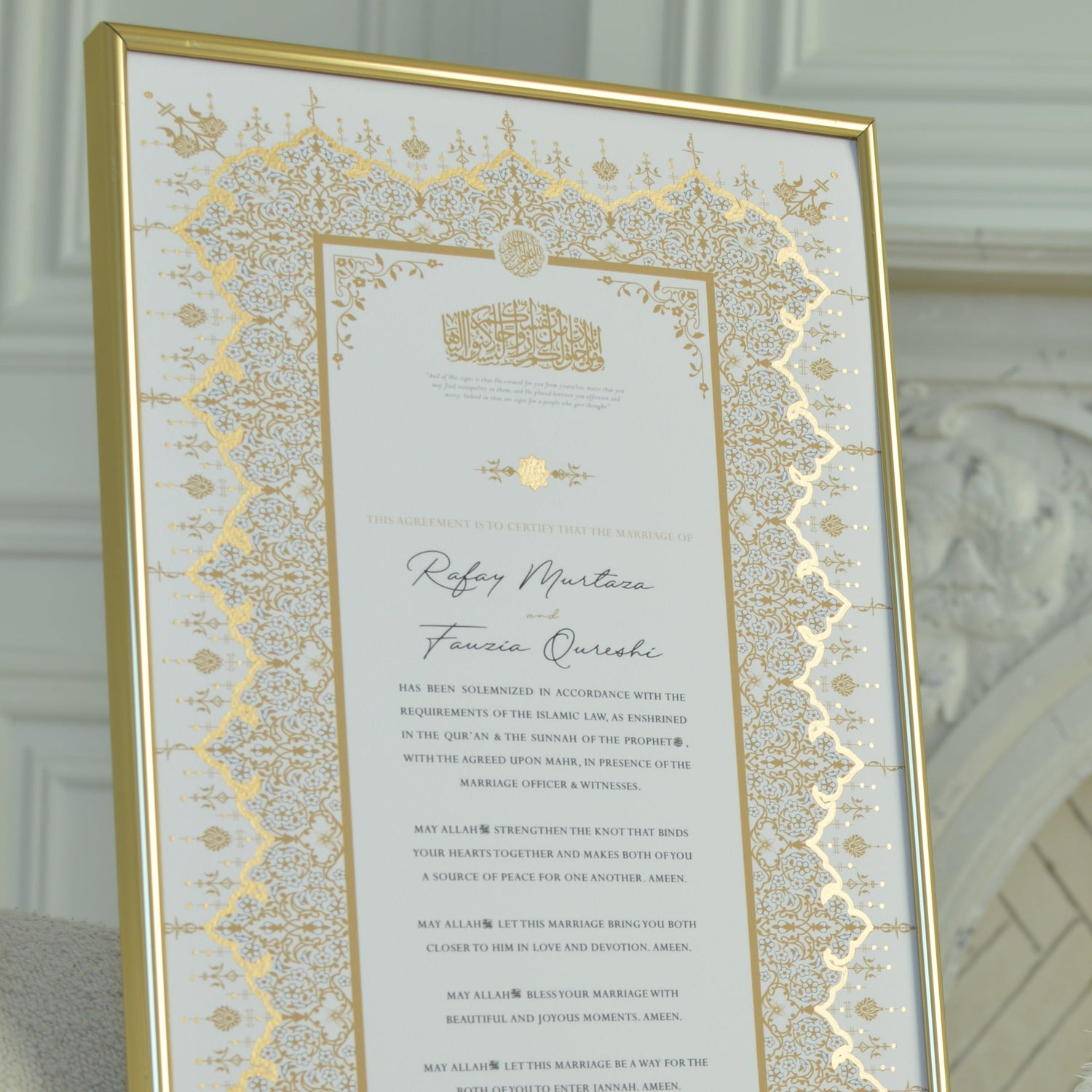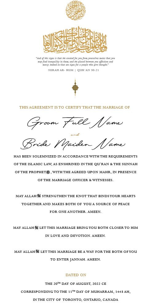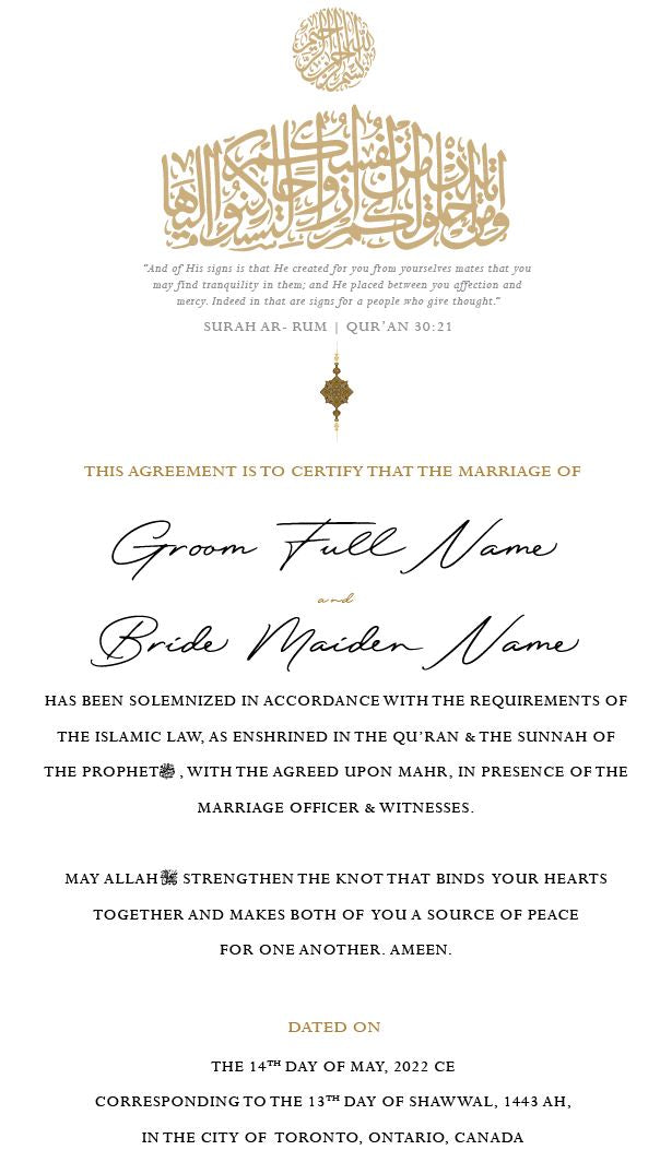 I was so pleased with my nikkah contract from Raessa Studio. Not only was it delivered in great condition, the intricacy of the design was very evident. I could tell that someone hand painted the gold border and it made our nikkah ceremony extra special!