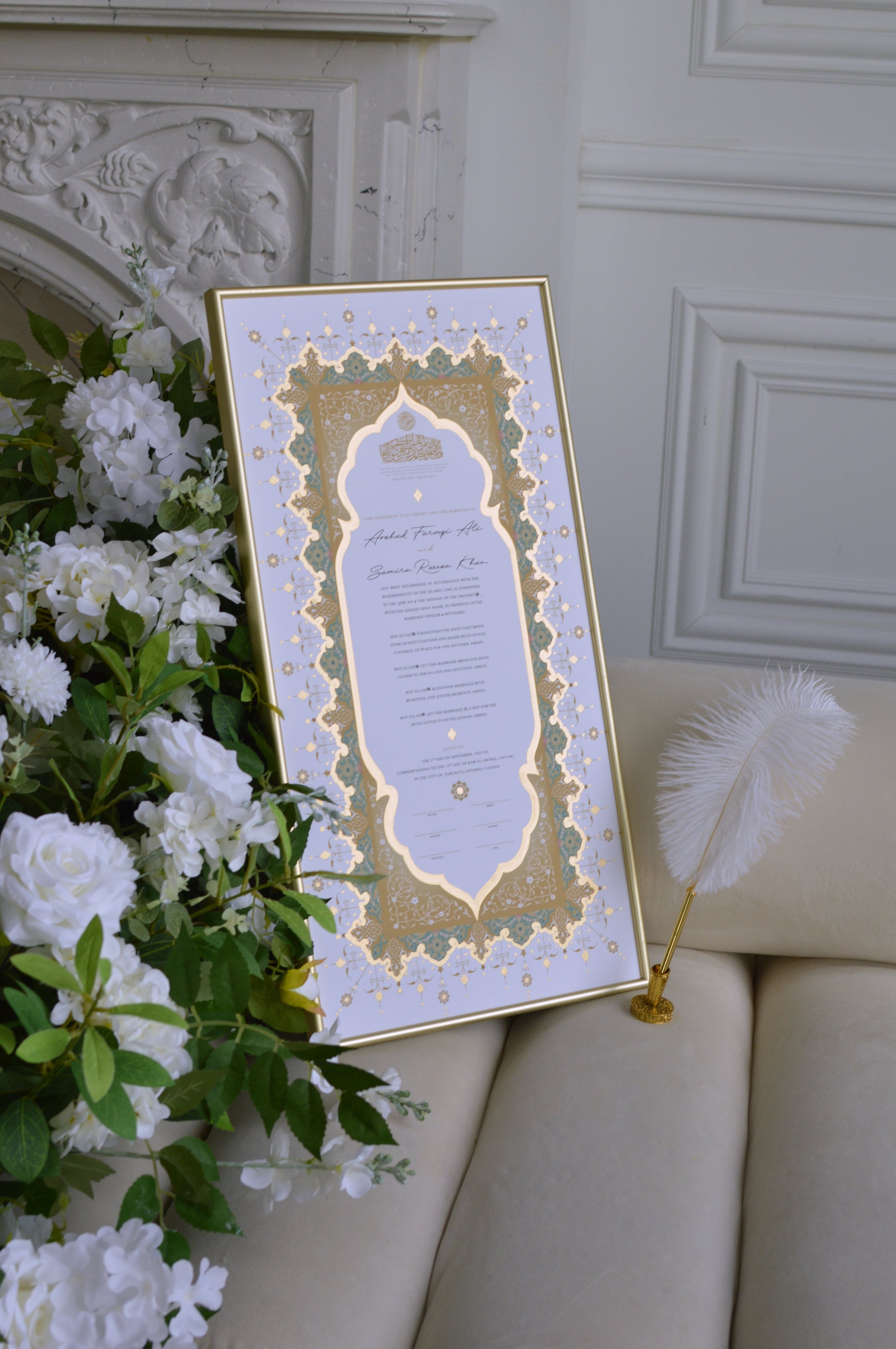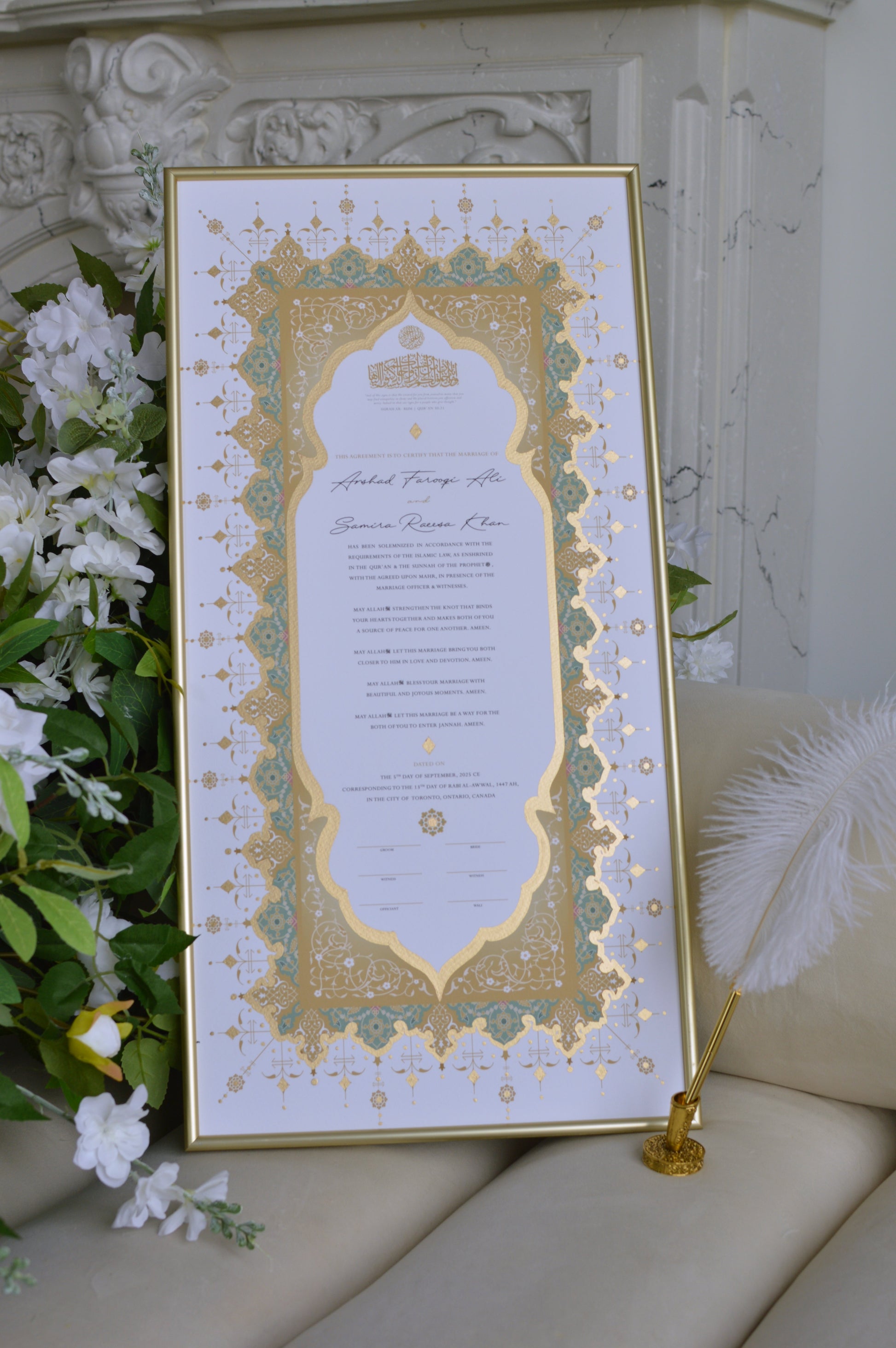 BUNDLE: Jahanara Sage Nikah Certificate Gold Embellishment + Frame + Pen