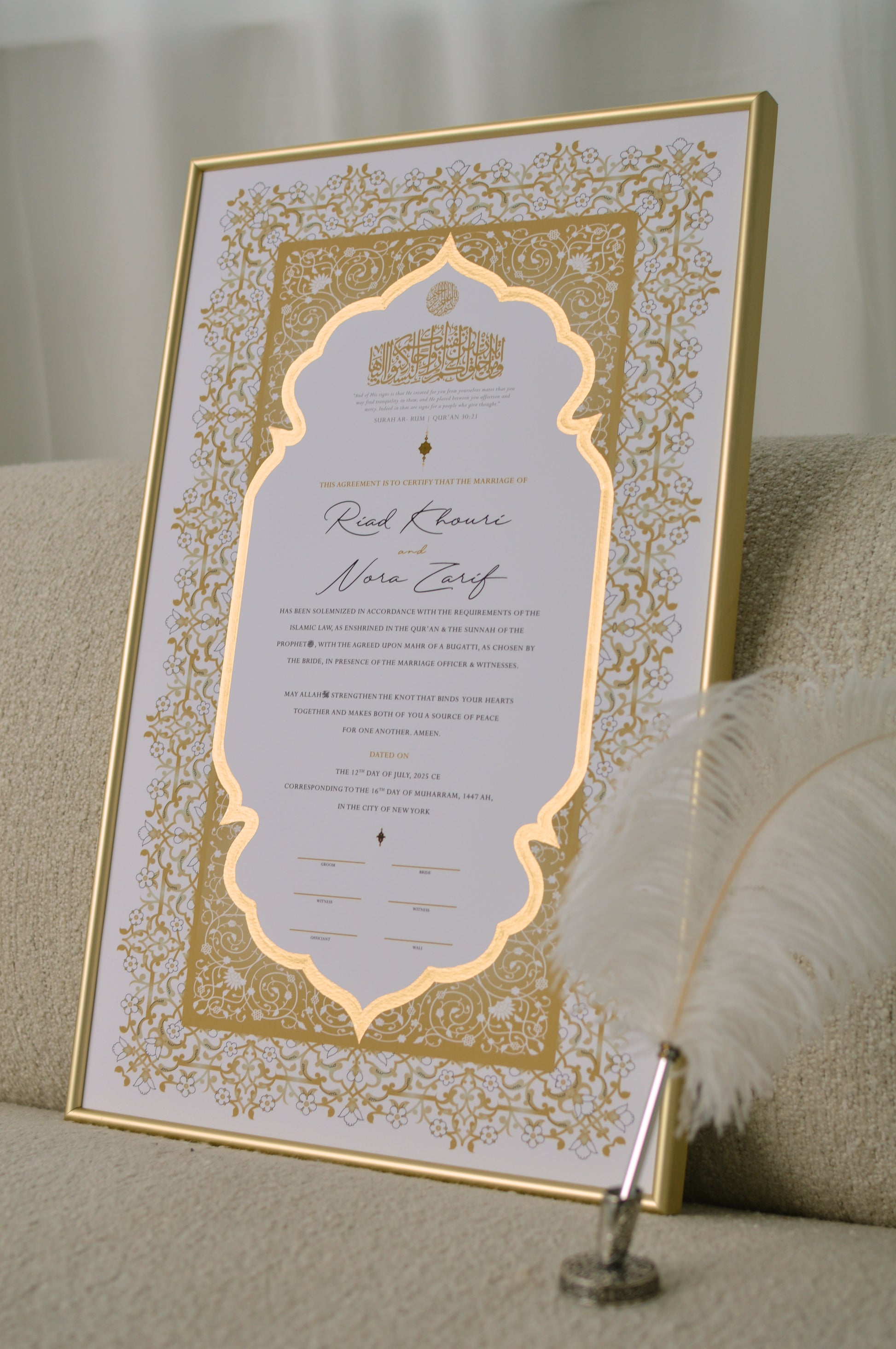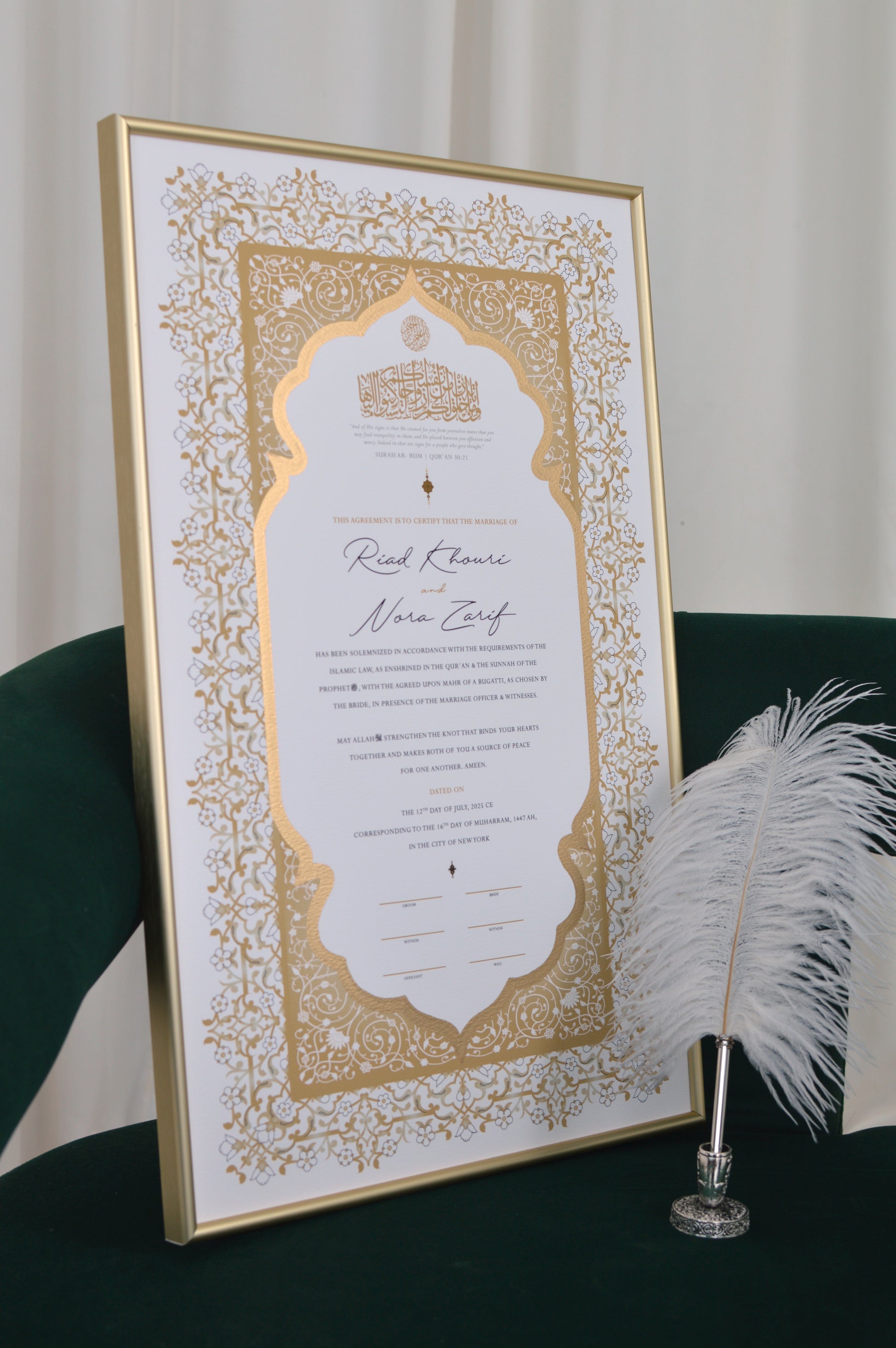 BUNDLE: Shireen Nikah Certificate Gold Embellishment + Frame + Pen
