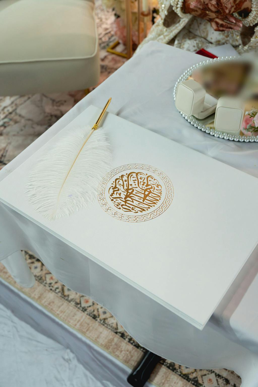 The couple’s crest is a unique emblem exclusive to Raeesa Studio nikah certificates and wedding products. Our calligrapher will create a beautiful crest featuring the groom and bride's first names in Arabic.
