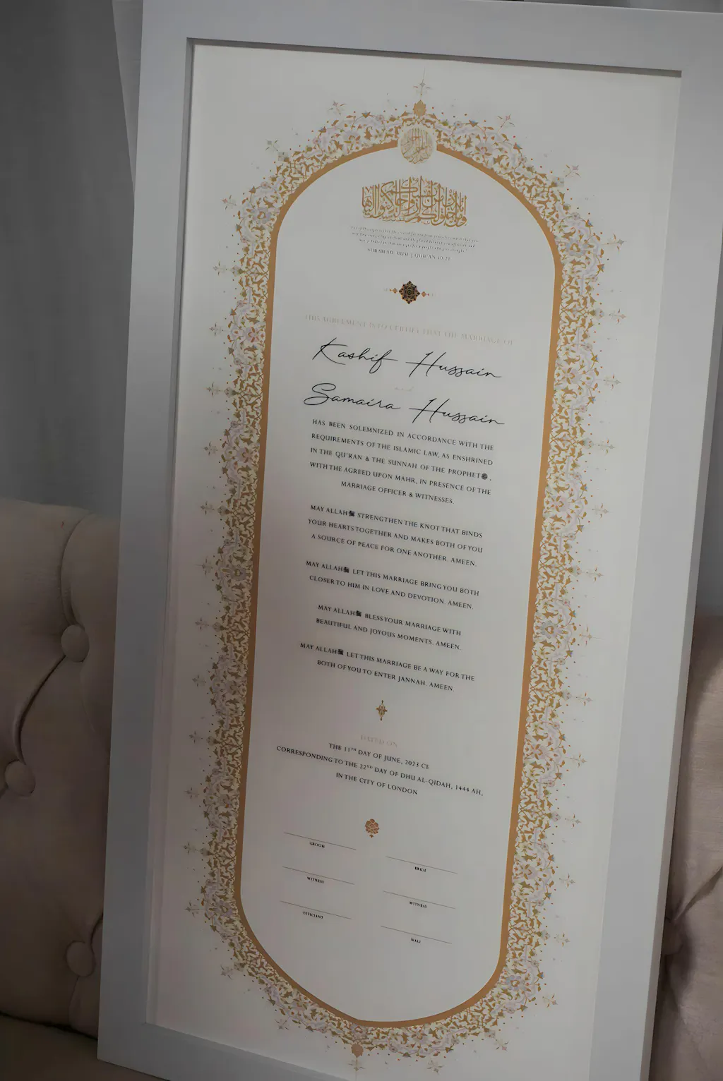 Raeesa Nikah Certificate: Gold