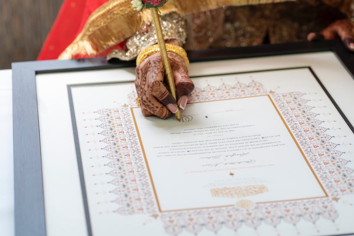 Raeesa Studio nikah contracts have been evaluated by recognized marriage officiants in Canada. These certificates have been signed by numerous couples worldwide, including those in the United States of America, the United Kingdom, Australia, and various European and Asian countries, at their nikah ceremonies.