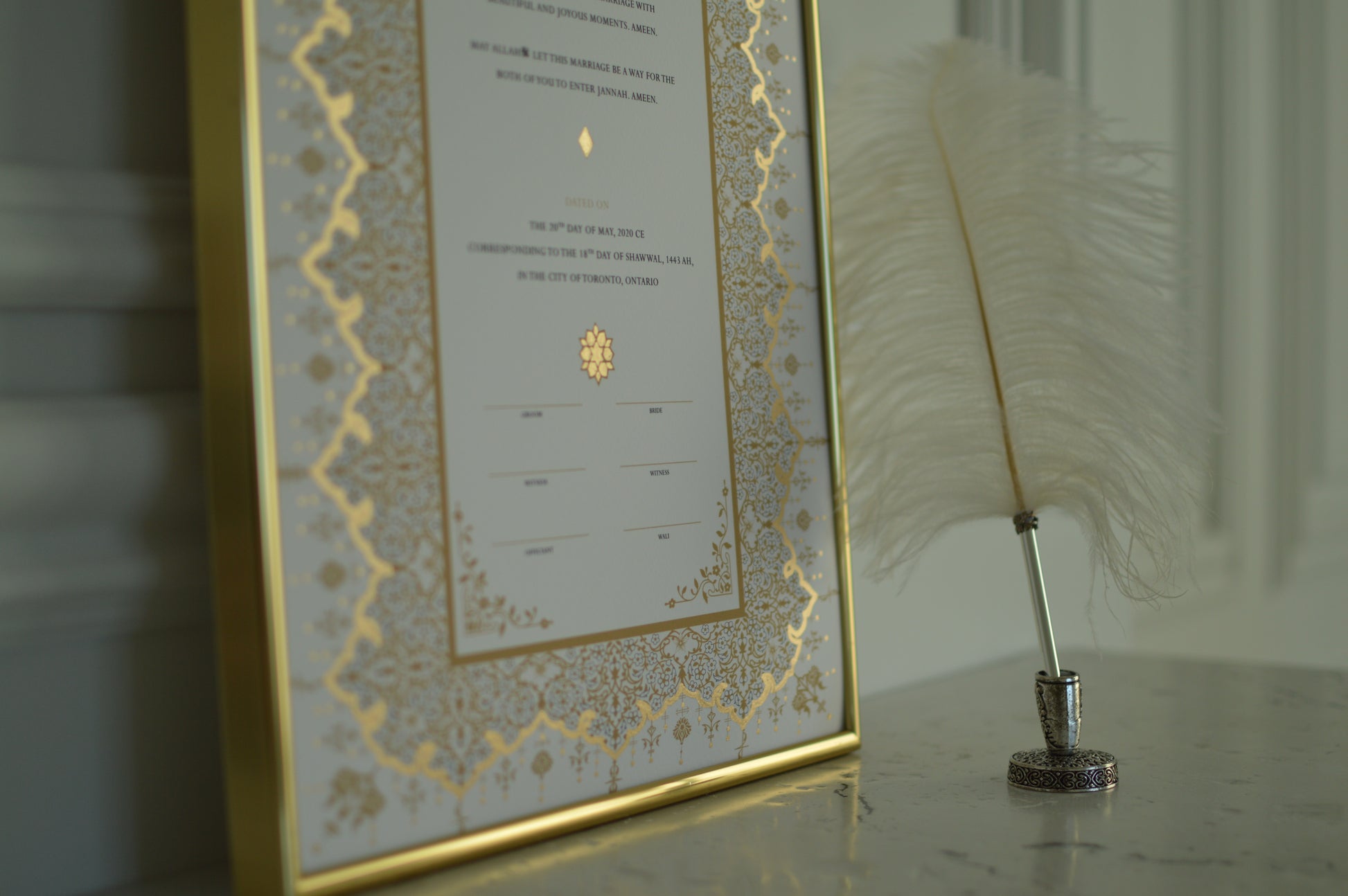 Raeesa Studio nikah contracts have been evaluated by recognized marriage officiants in Canada. These certificates have been signed by numerous couples worldwide, including those in the United States of America, the United Kingdom, Australia, and various European and Asian countries, at their nikah ceremonies.