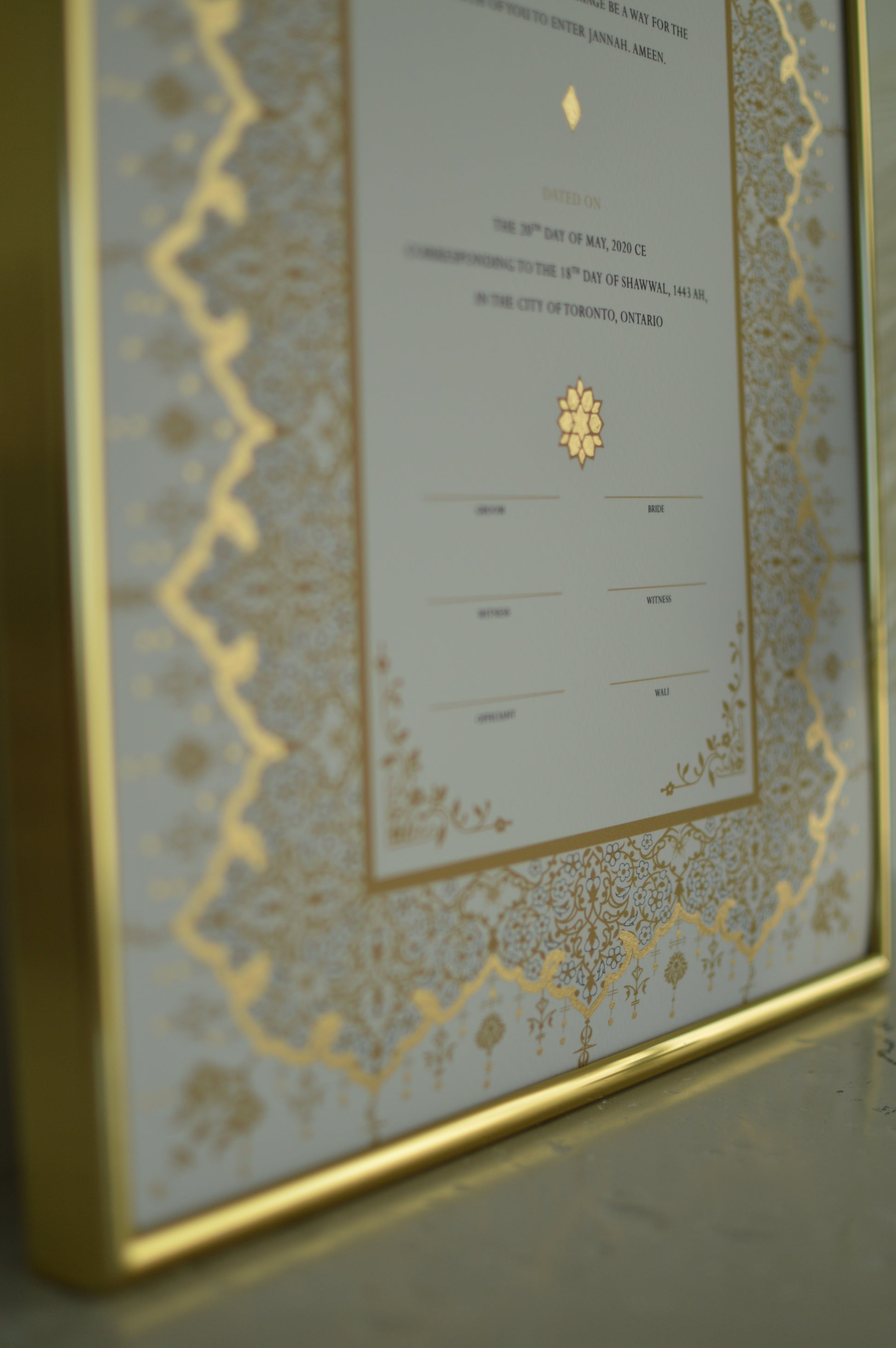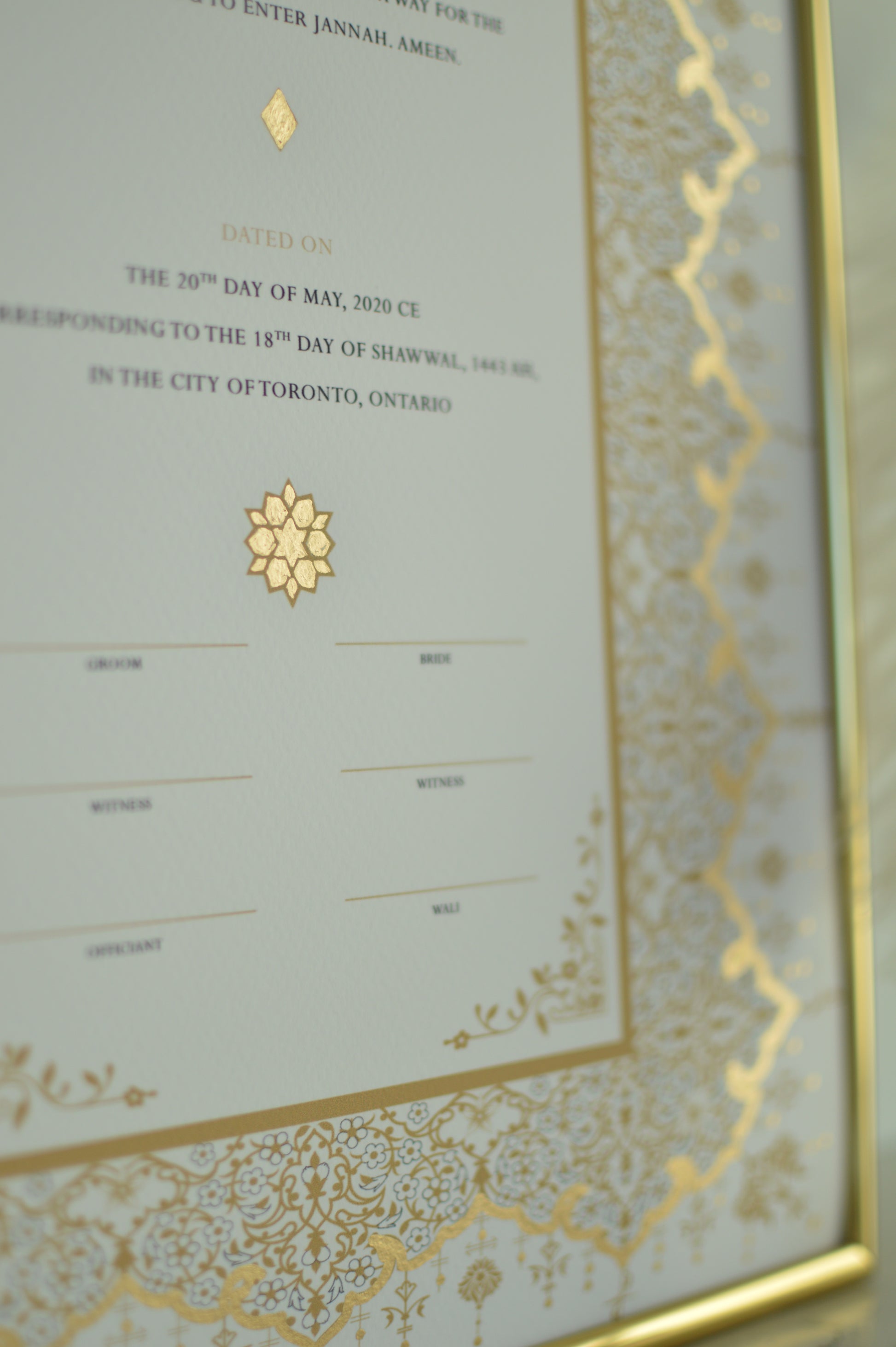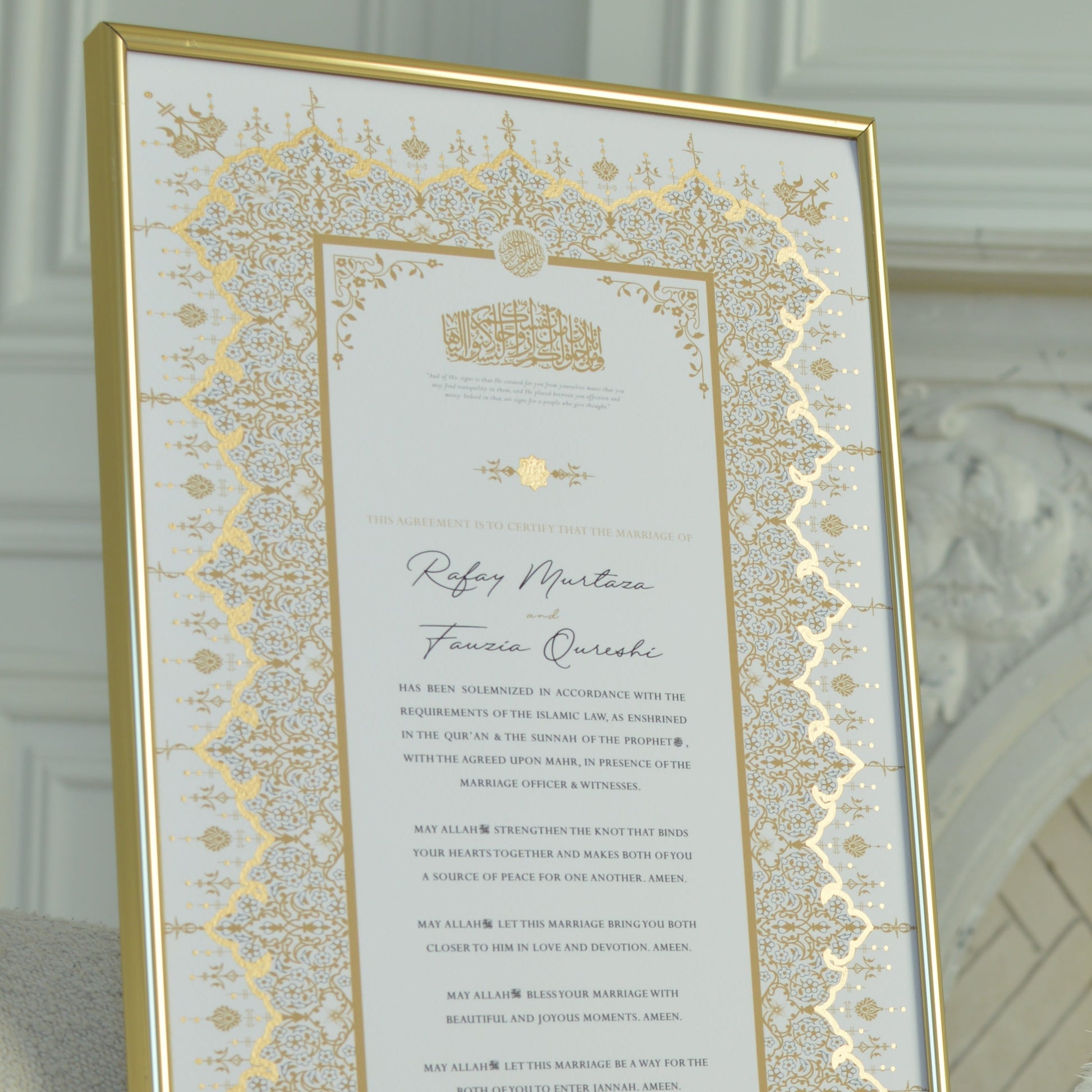 Soraya Nikah Certificate - Gold Embellished